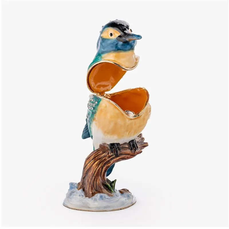 Perhaps you or someone you love can attest to the thrill of glimpsing a kingfisher swoop down for his catch, watching blue jays jostle at the backyard feeder, or hearing a crimson cardinal suddenly burst into song. The universal joy birds inspire is why we’re delighted to unveil our Friends of a Feather Kingfisher Trinket Box, a bejeweled tribute to those jewels of the animal kingdom. Handmade in durable pewter and finished with sparkling enamel and Austrian crystals, this exquisitely rendered bird hinges open to safeguard your treasures.