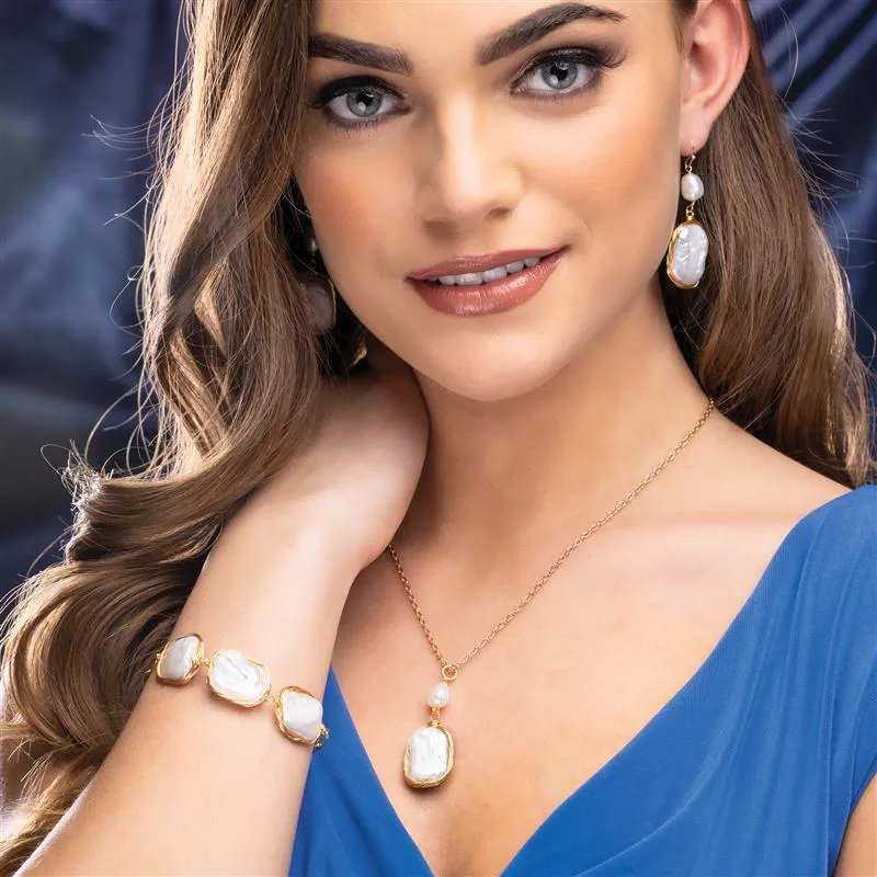 Undeniably classy, yet understated enough to be heaped on in excess, the always-fashionable pearl became the hallmark of a new breed of royalty one born from beauty, talent and gumption. Now the leading lady in your life can experience the timeless glamour of pearls in a uniquely modern ensemble with our Golden Age Pearl Necklace. Large baroque freshwater pearls framed in yellow gold-finished settings serve up all the dazzle of Old Hollywood at a price you wont need a studio to bankroll. Elegant, refined, charming these are just a few words that sum up this necklace of extravagant pearls in a sophisticated setting. These glistening, iridescent gems are some of the best-loved gems of all time. Dont you think the woman in your life deserves some pearls to call her own? Cast this piece in a supporting role, and your work here is done then just sit back, relax and watch as a star is born.