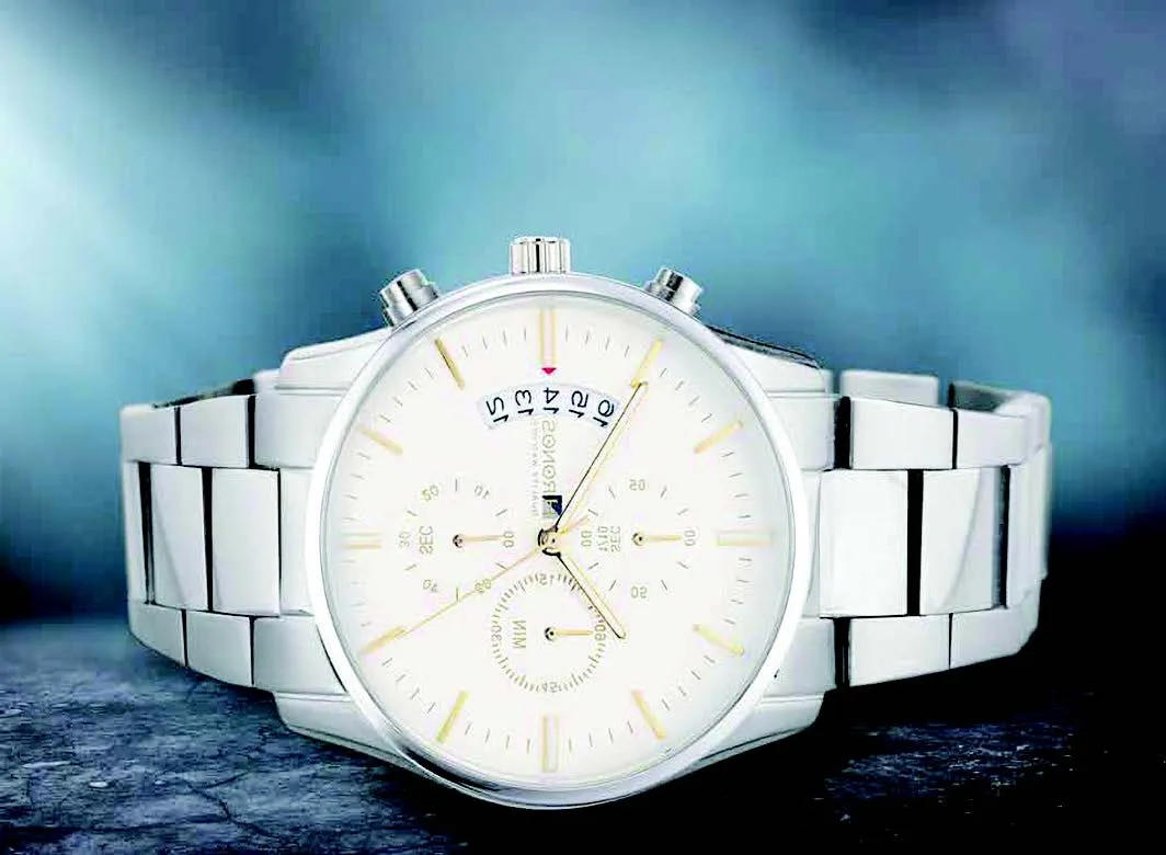 This Chronograph Watch presents a classic yet stylish look from the Hronos Envy Collection. Featuring a Stainless Steel case and bracelet, this watch delivers sophistication with simplicity. Clearly marked indices and three separate subdials help you track your time with more precision. A handsome, feature-packed chronograph and high polished stainless steel construction; there’s simply no need to bother changing watches with this powerhouse on your wrist. Sleek, durable, precise, and priced for less than you would think. A versatile timepiece that will serve you well no matter what the occasion without overspending on a big-name designer watch that puts most of its effort into its logo.