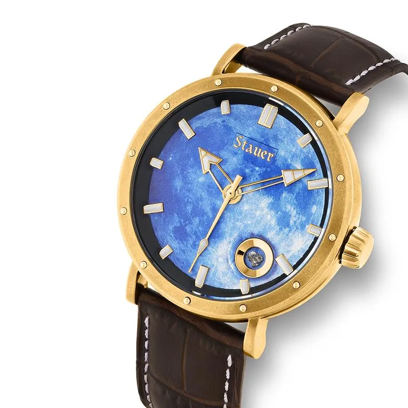 The lunar meteorite featured in this watch was located in Mauritania’s Sahara Desert and authenticated by Professor Anthony Irving of the University of Washington’s Department of Earth and Space Sciences. Dr. Irving’s findings underwent peer review and were published in the peer reviewed 108th edition of the Meteoritical Bulletin.