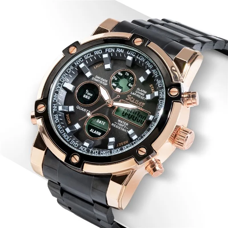 Outfitted with a stopwatch, alarm, a.m./p.m. settings, and day, date and month complications, this timepiece stands out from the crowd. With its large face and handsome, masculine design, this watch is perfect for the back nine and the happy hour afterward. Water-resistant up to 3 ATM, this timepiece won’t wimp out if he has a run-in with a water hazard.