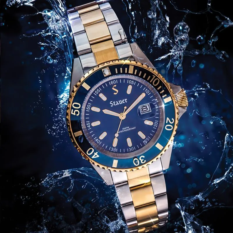 Whether you’re going snorkeling on vacation or swimming in your local pool, or even just stepping under your own shower, the Explorer is the stylish way to do it. The midnight blue face with date window at 3 o’clock is a classic, substantial look.
