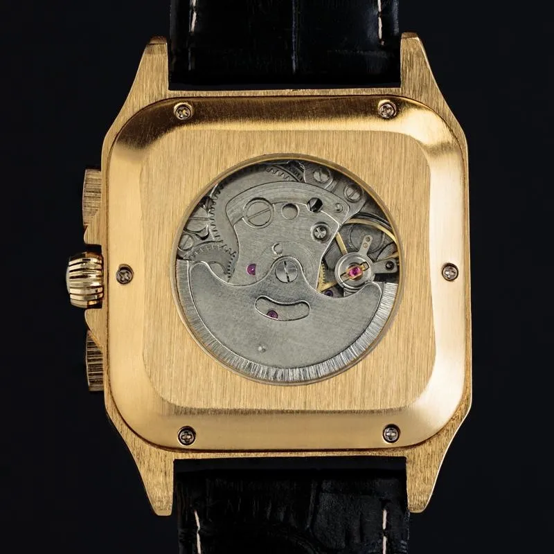 The Aviador proudly sports a square case, slightly curved on all sides, ensuring effortless comfort on the wrist, mirroring the original design’s elegance. Slanted hour markers, a fusion of Roman and Arabic numerals, adorn the dial, adding a touch of sophistication. To aid adventurers in their quests, we’ve incorporated three subdials for tracking the date, day of the week, and military time.