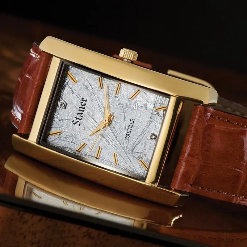 Watchmakers were no exception. They crafted rectangular cases for new wristwatches to stand apart from traditional (old-fashioned) round pocket watches. We took notes from the highest examples of 1930s design and transplanted those classic details into our dignified new men’s watch, the Stauer Castille.