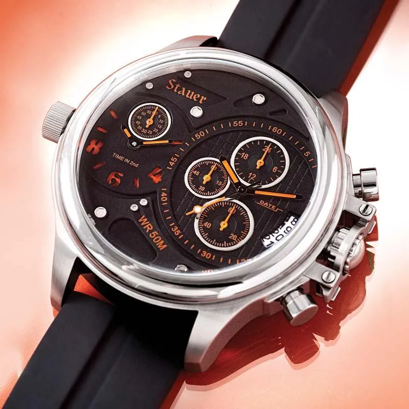 But have you ever noticed that those models never seem to make it to production? At some point, the designer’s fantasy meets the reality of the market. The rocket ship becomes a sensible ride. Ordinary. Economical. Boring. Watches can have the same problem. But not today. Today, the Stauer Diverso goes straight from the designer’s imagination to your wrist. The result is a stunning “concept watch” that delivers form, function and more than its share of personality. It’s remarkable that this watch exists at all. But the best part is that the Diverso exists now. Not tomorrow. Not 10 years from now. It’s here today, hot off the drawing board and working hard with two faces, four eyes and all nine hands!