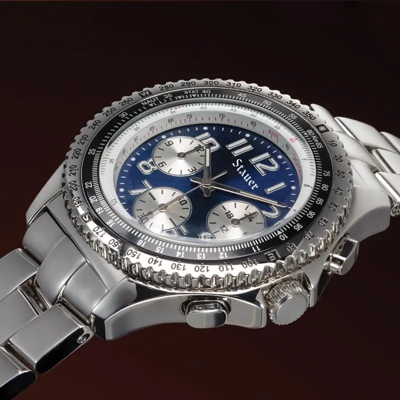 The Universal’s rotating bezel also features a tachymeter for measuring speed and distance, putting you in control of any high-pressure international situation. The Universal is your stylish solution to a life lived at full speed and in one too